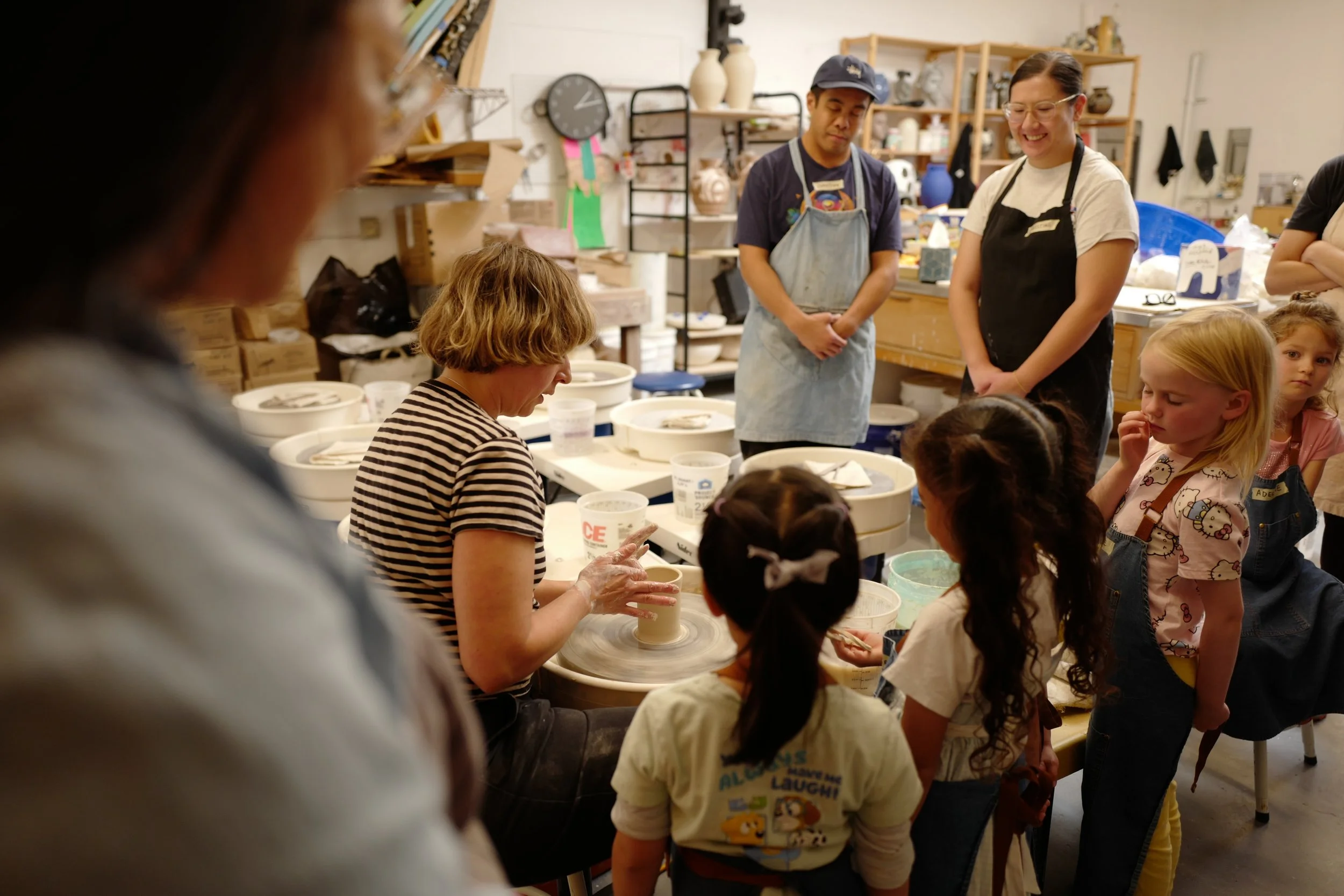 This is a class for kids ages 7-12 to discover clay and work with our teaching artists. Kids will learn the basics of the pottery wheel and hand building with project-based learning.
